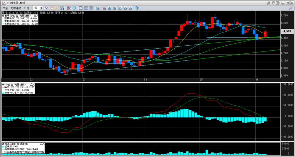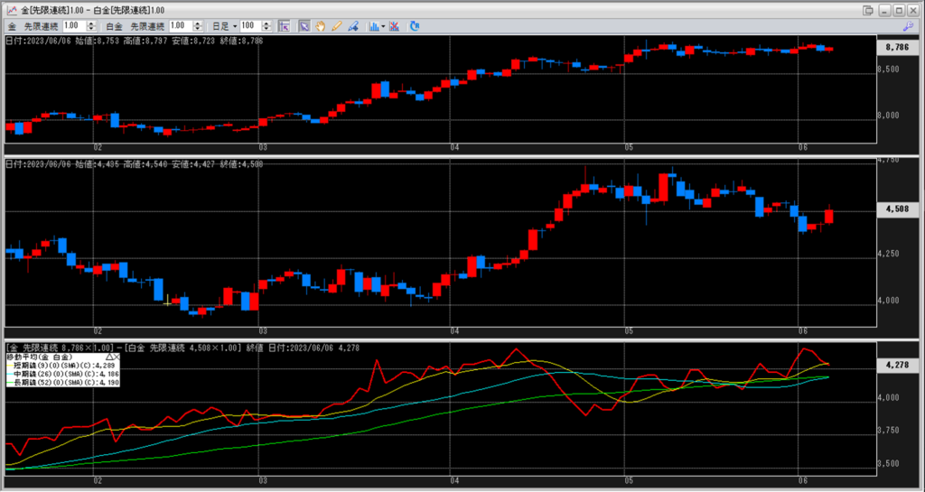 下記に金白金鞘の移動平均線のチャートを貼り付けています。