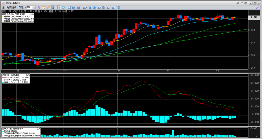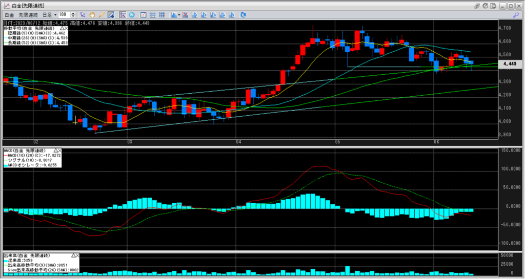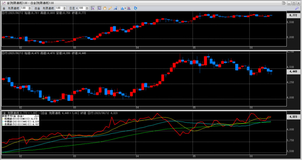 下記に金白金鞘の移動平均線のチャートを貼り付けています。