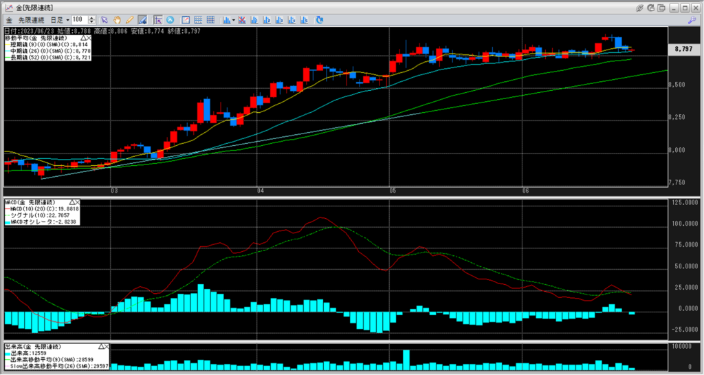 下記に金白金鞘の移動平均線のチャートを貼り付けています。