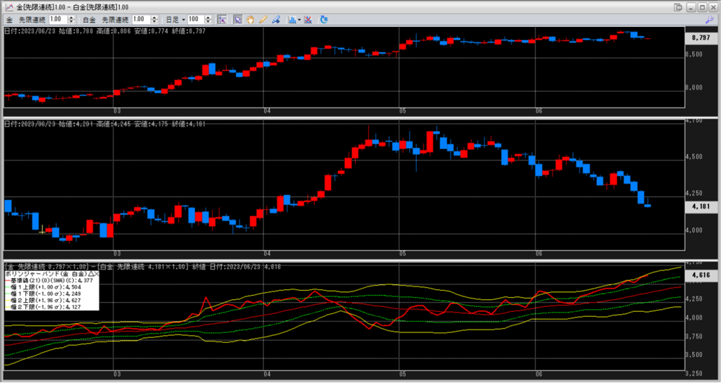 金白金の鞘をボリンジャーバンドで見ていきます。