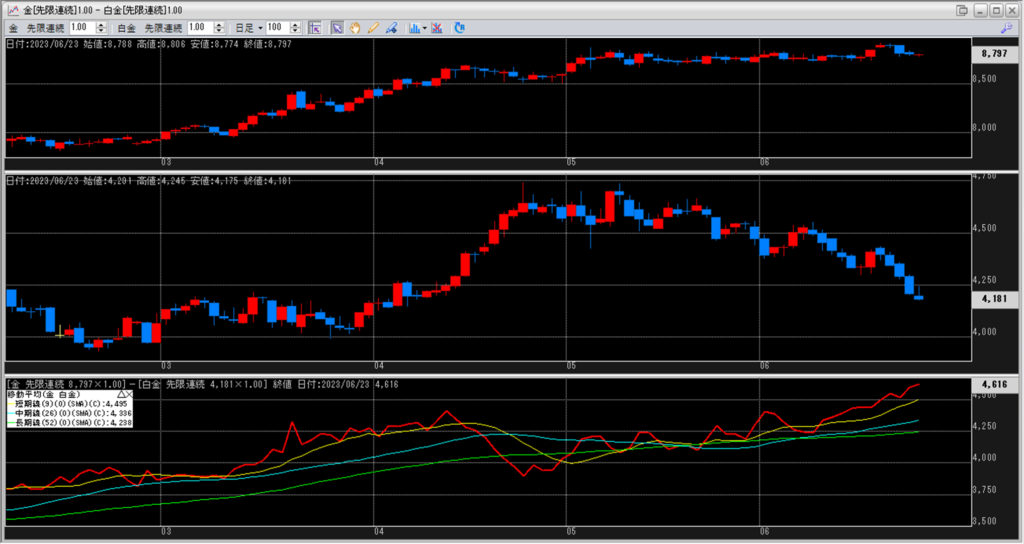 金白金の鞘の移動平均を見ていきます。