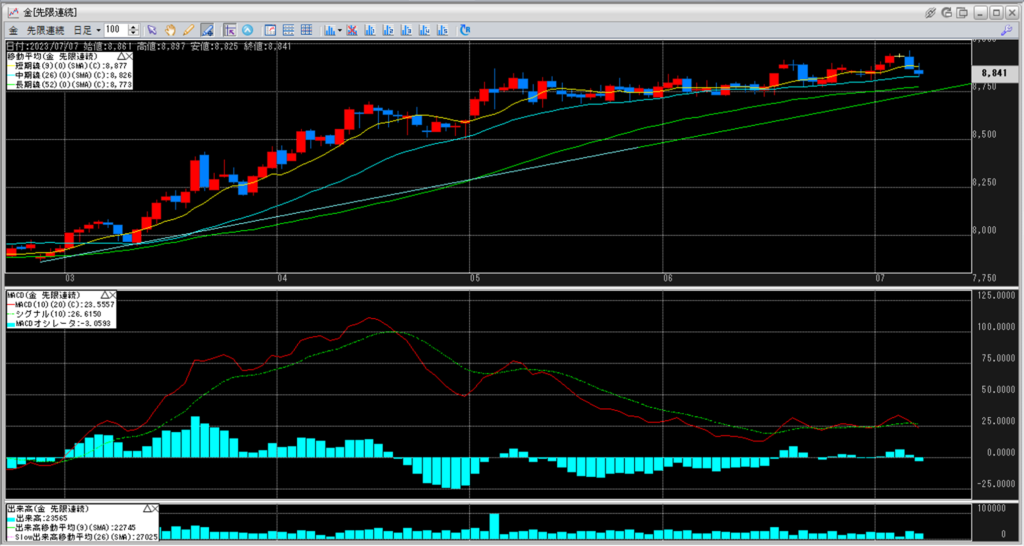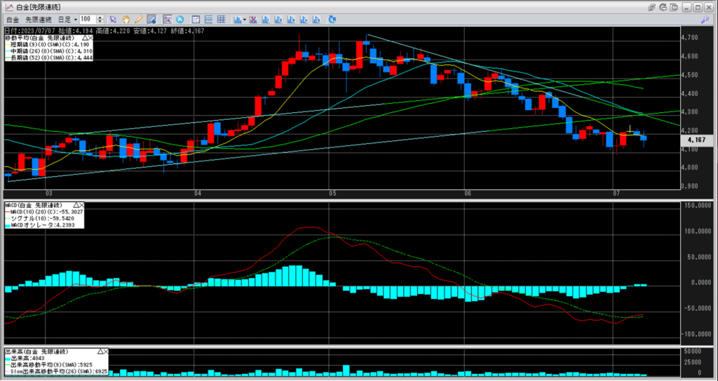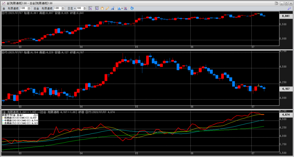 下記に金白金鞘の移動平均線のチャートを貼り付けています。