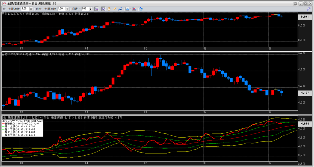 金白金の鞘をボリンジャーバンドで見ていきます。
