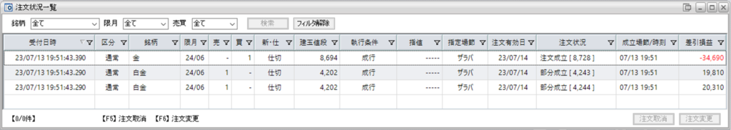 鞘縮小の仕掛け金売り1枚-白金買い2枚を新規で建てていきたいと思います。