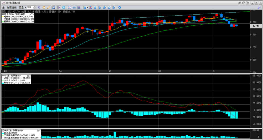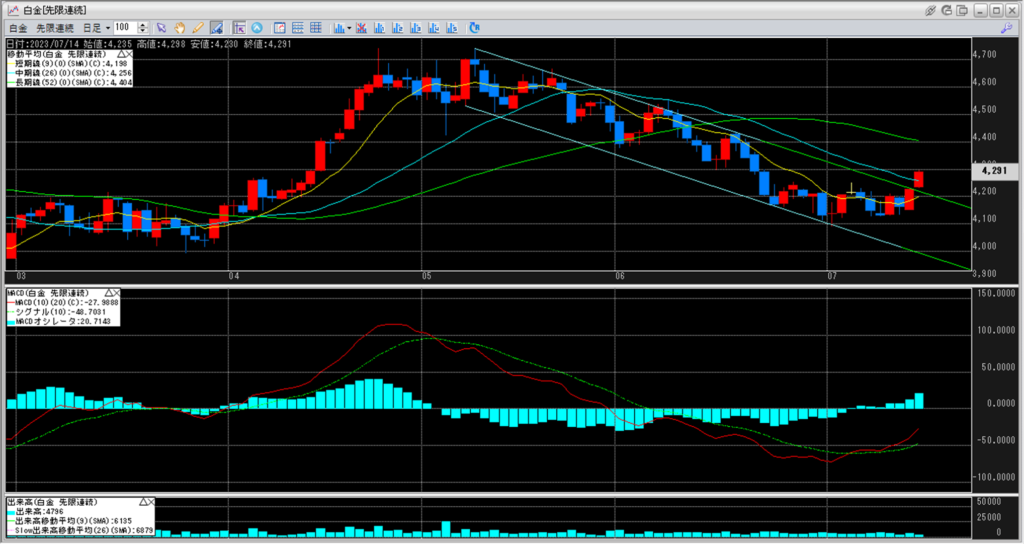 下記に金白金鞘の移動平均線のチャートを貼り付けています。