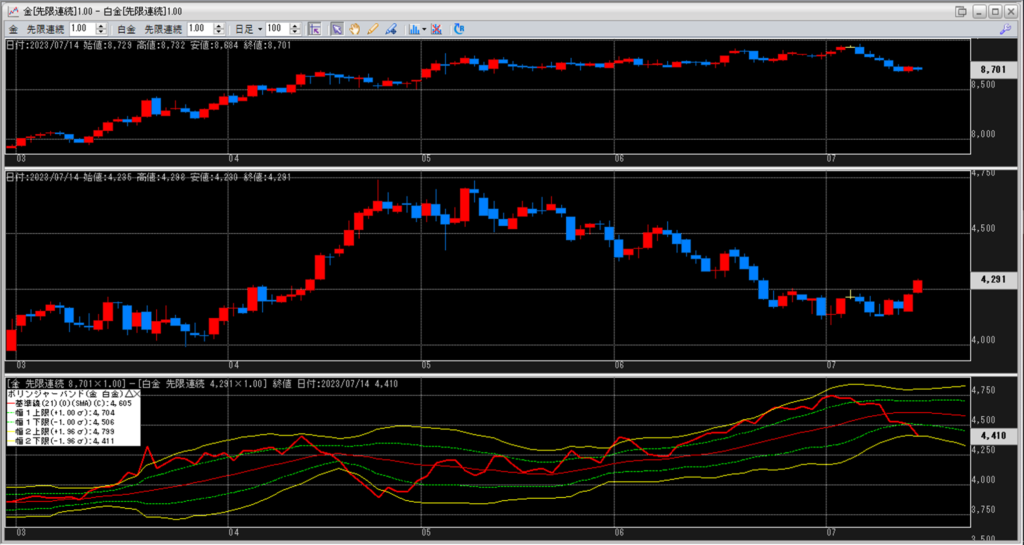 金白金の鞘をボリンジャーバンドで見ていきます。