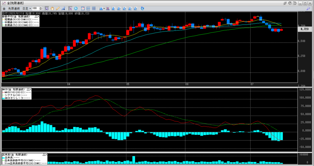 下記に金白金鞘の移動平均線のチャートを貼り付けています。