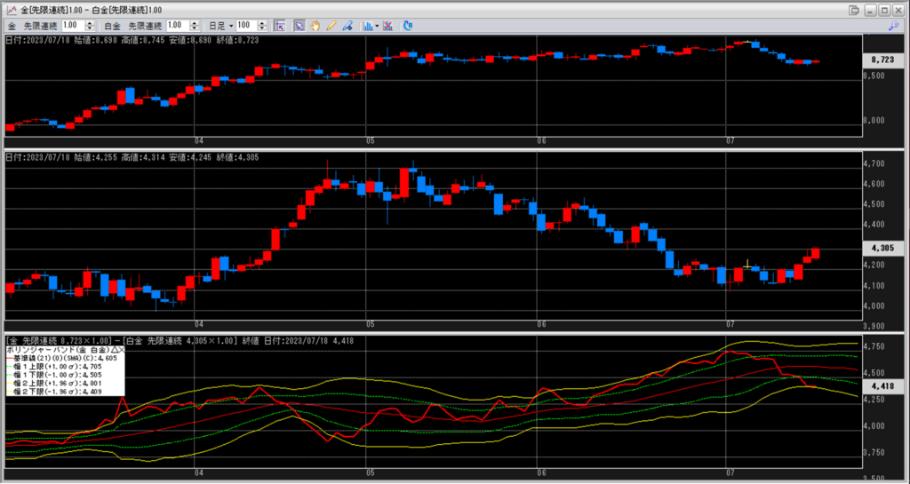 金白金の鞘をボリンジャーバンドで見ていきます。