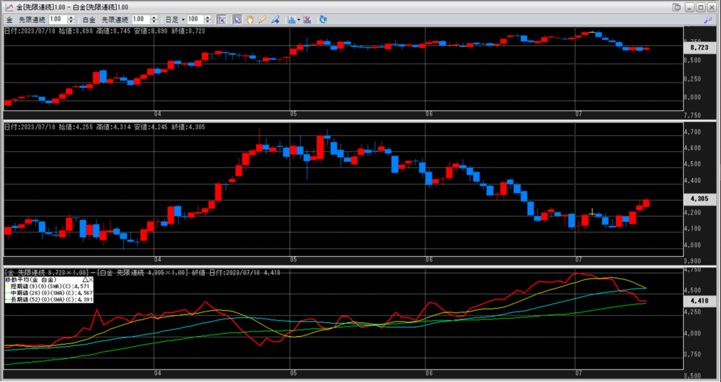 金白金の鞘の移動平均を見ていきます。