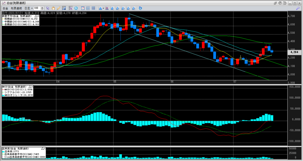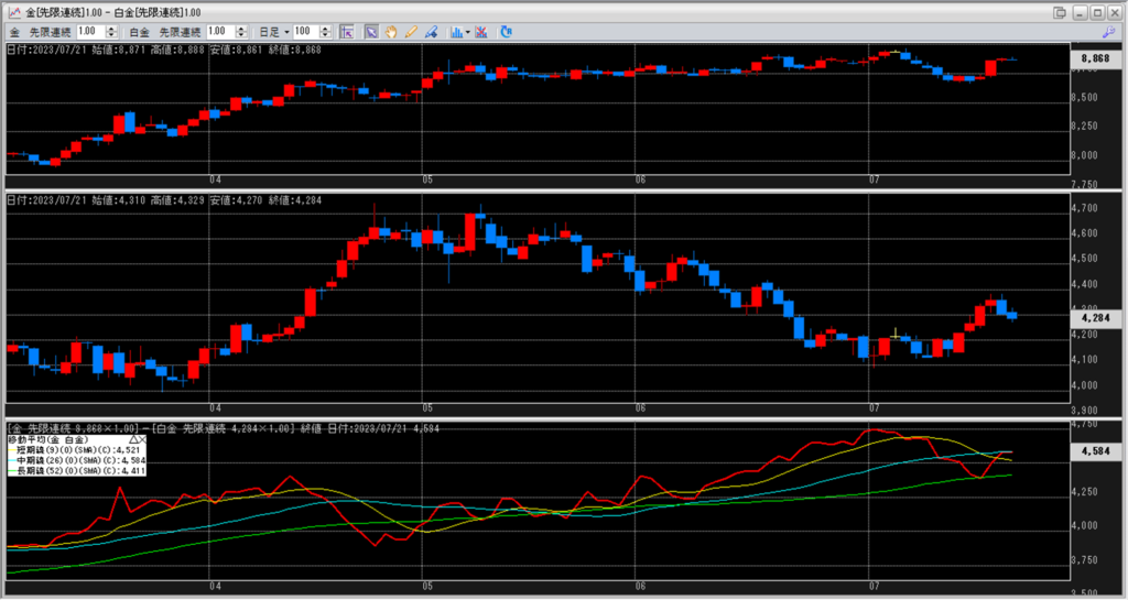 下記に金白金鞘の移動平均線のチャートを貼り付けています。