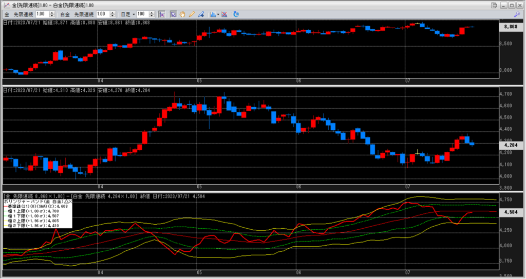 金白金の鞘をボリンジャーバンドで見ていきます。