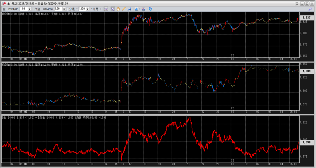 中:大阪取引所 白金 2024年6月限 1分足