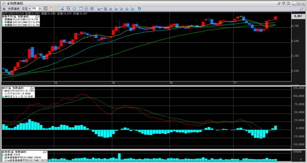 下記に金白金鞘の移動平均線のチャートを貼り付けています。