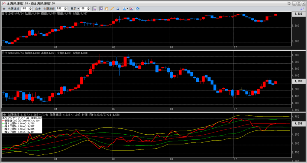 金白金の鞘をボリンジャーバンドで見ていきます。