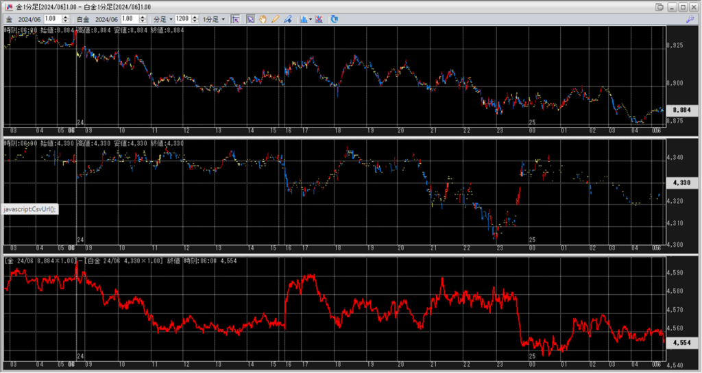 金白金鞘値動きのチャートを張り付けています。