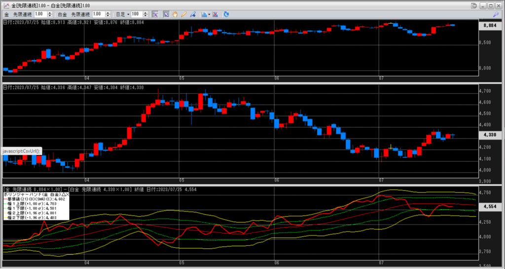 金白金の鞘をボリンジャーバンドで見ていきます。