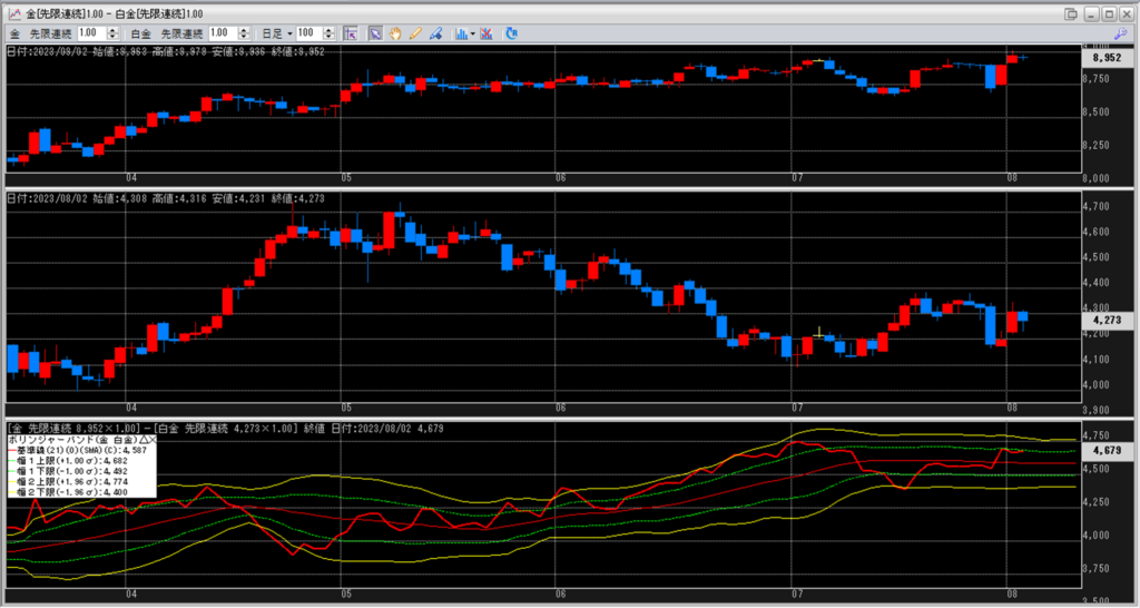 金白金の鞘をボリンジャーバンドで見ていきます。
