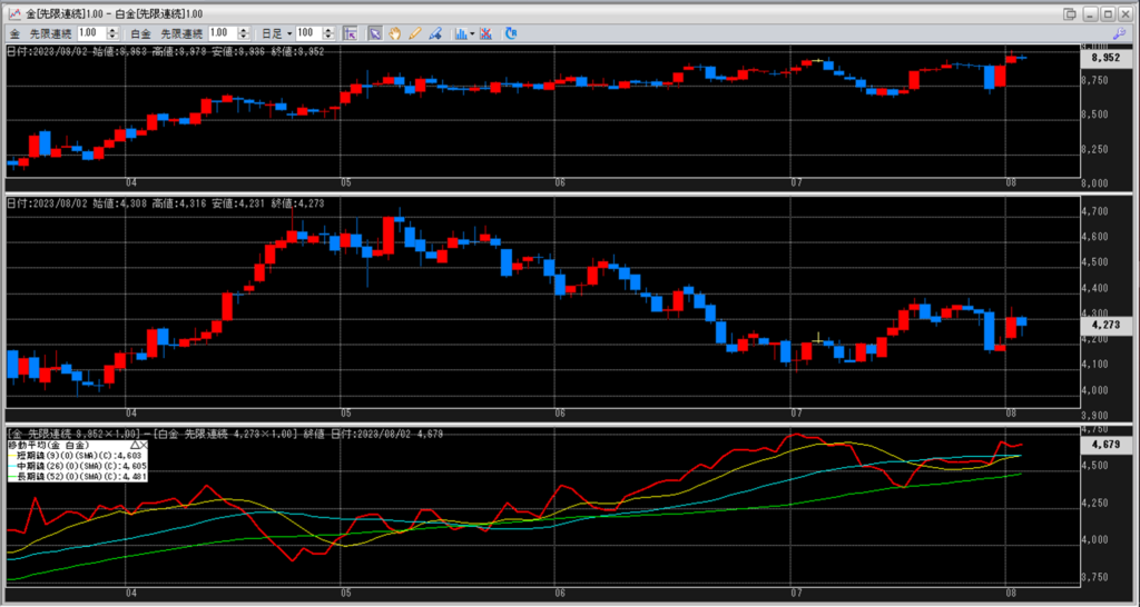 金白金の鞘の移動平均を見ていきます。