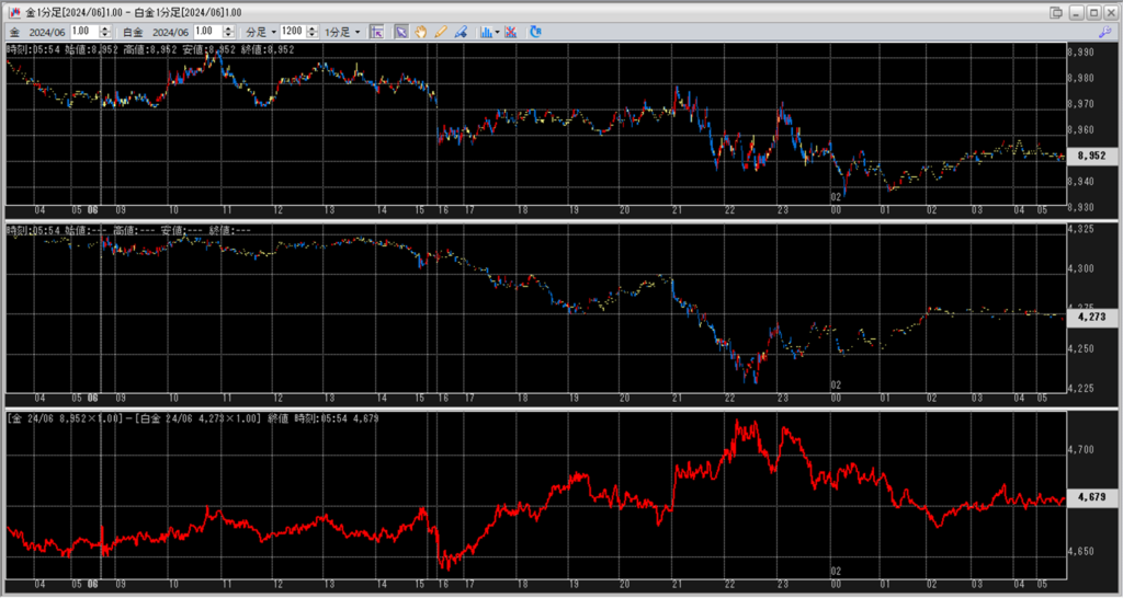 中:大阪取引所 白金 2024年6月限 1分足