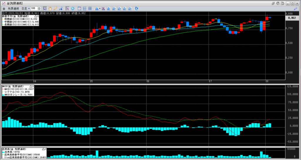 金価格は、6:00時点での終値は8,952円となっています。