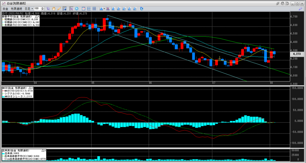 下記に白金のチャートを貼り付けています。
