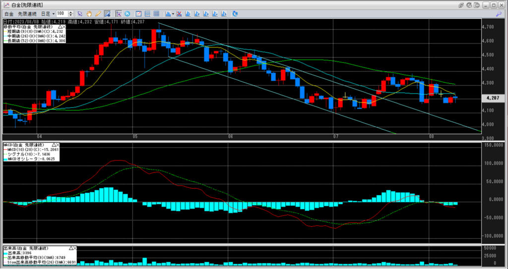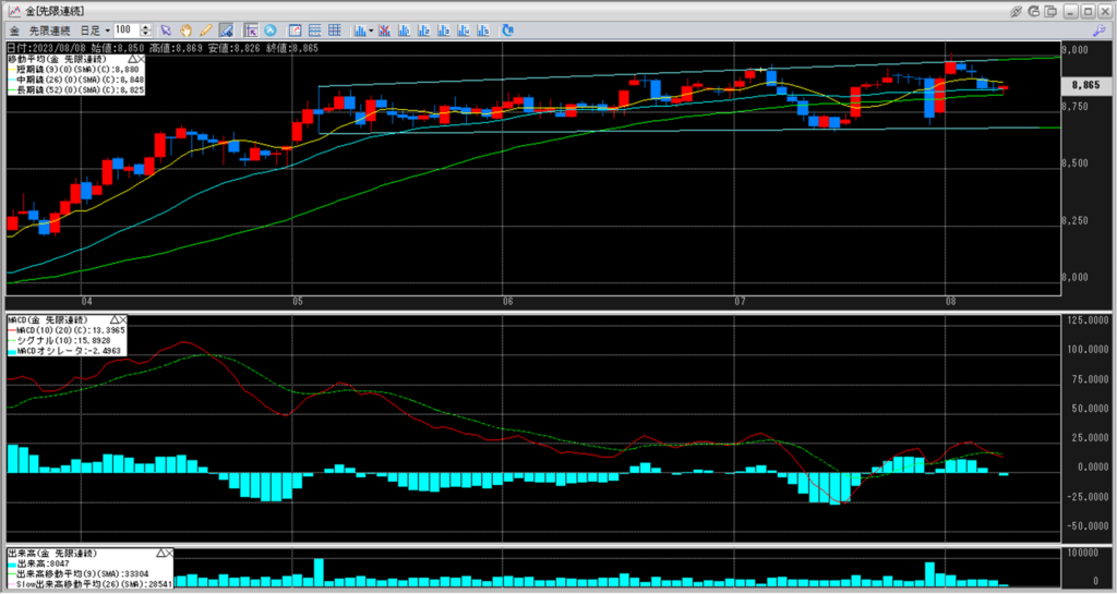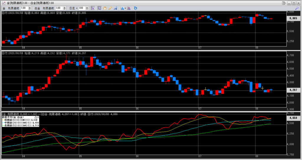 下記に金白金鞘の移動平均線のチャートを貼り付けています。