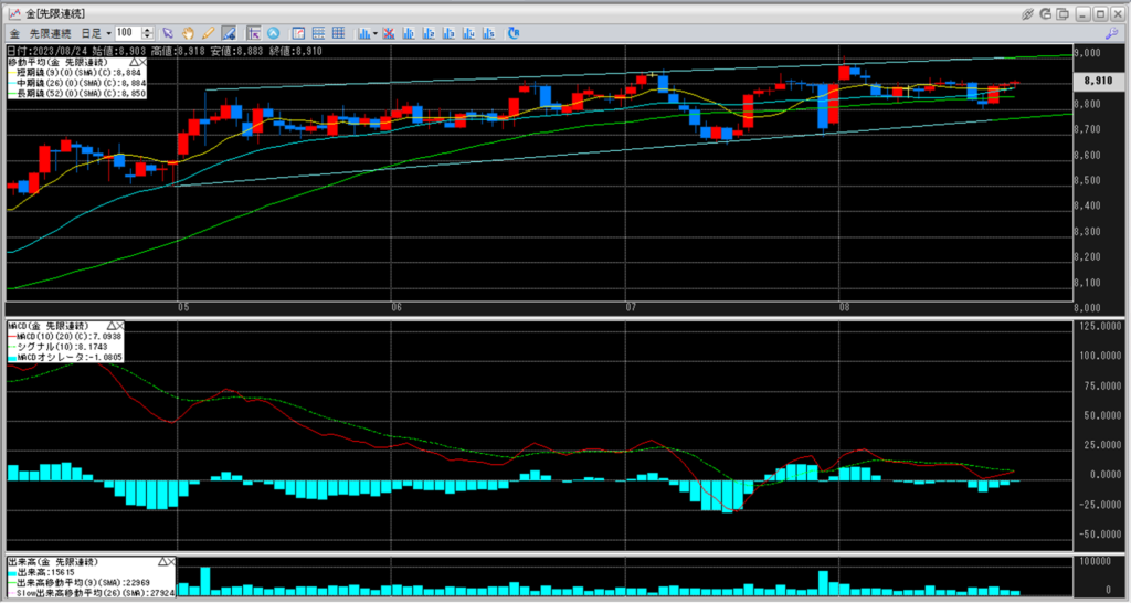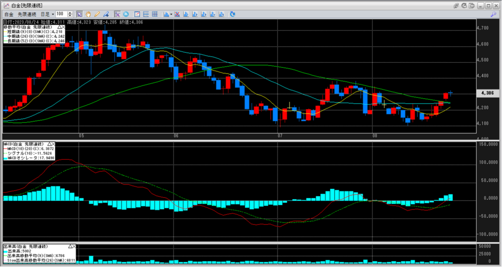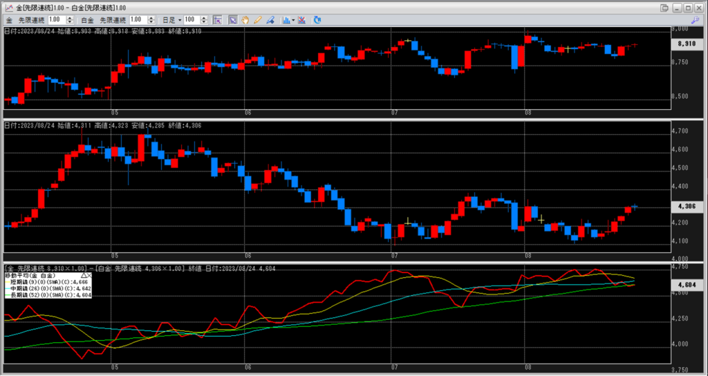下記に金白金鞘の移動平均線のチャートを貼り付けています。