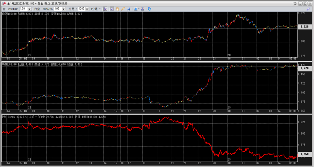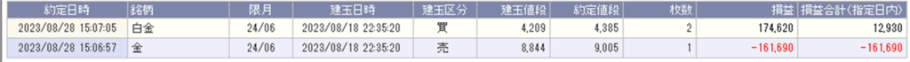 鞘拡大の仕掛金買い1枚-白金売り2枚と鞘拡大の仕掛金買い1枚-白金売り2枚を