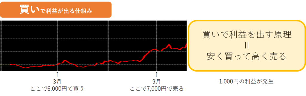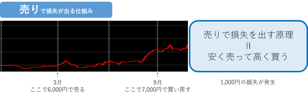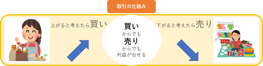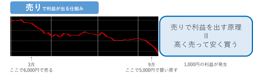 逆に売りから入った場合、値段が下がってしまうと利益が発生します。