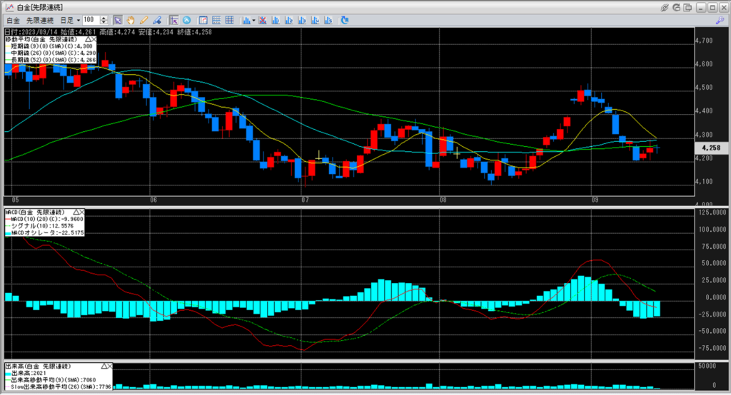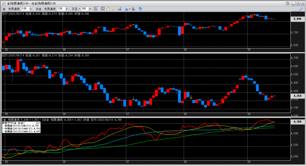下記に金白金鞘の移動平均線のチャートを貼り付けています。