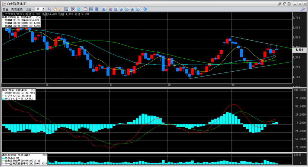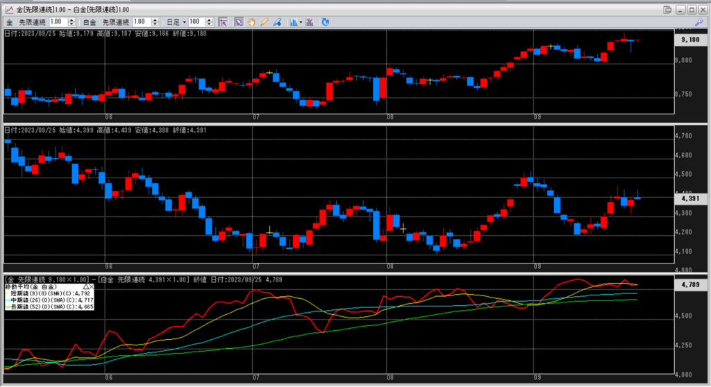 下記に金白金鞘の移動平均線のチャートを貼り付けています。