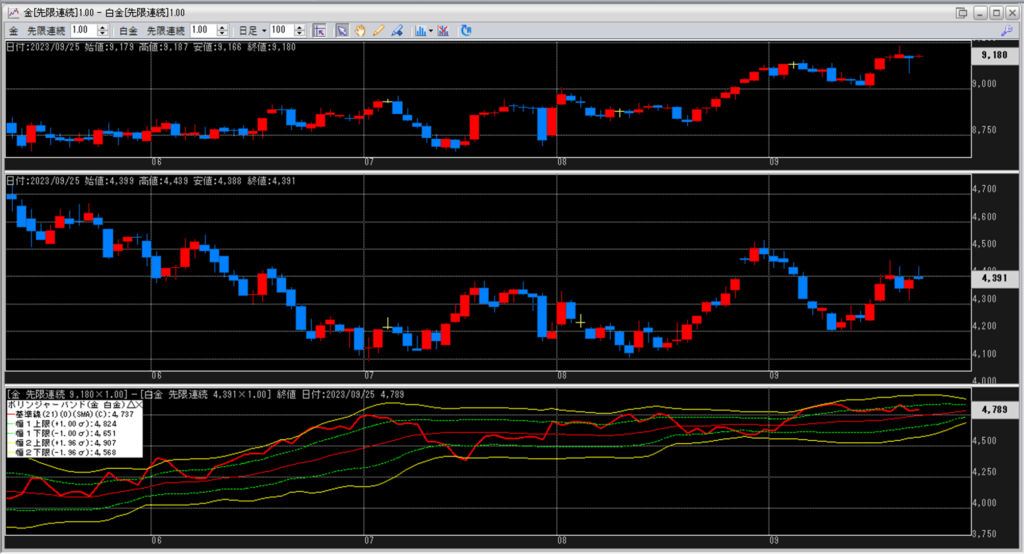 金白金の鞘をボリンジャーバンドで見ていきます。