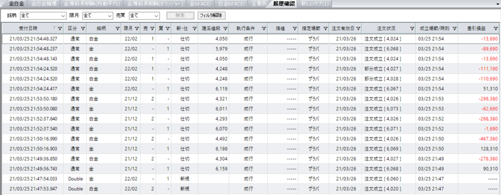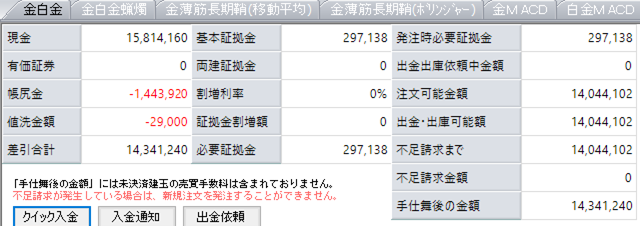 最終的に金売り6枚-白金買い12枚という状況でした。