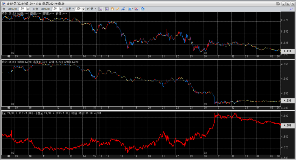 中:大阪取引所 白金 2024年8月限 1分足