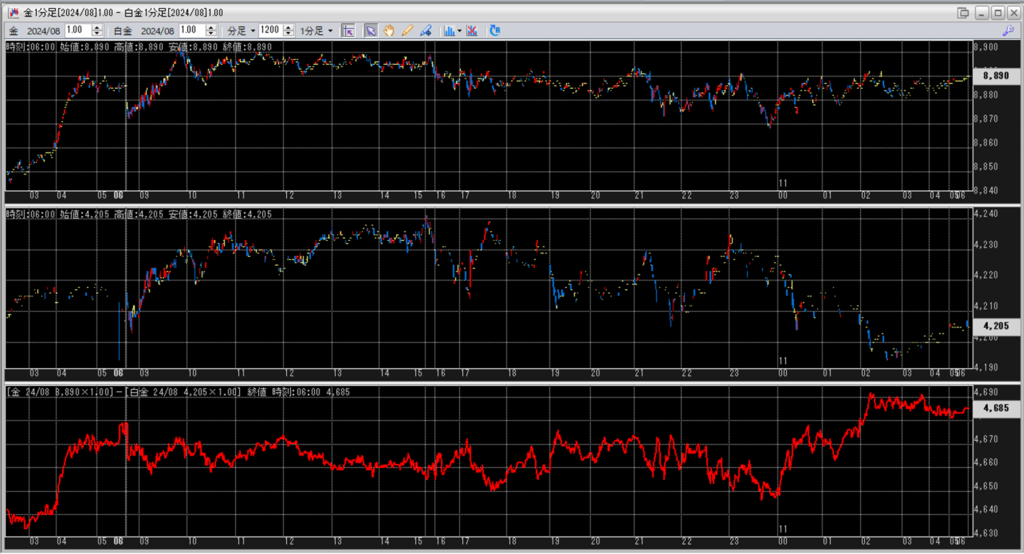 中:大阪取引所 白金 2024年8月限 1分足