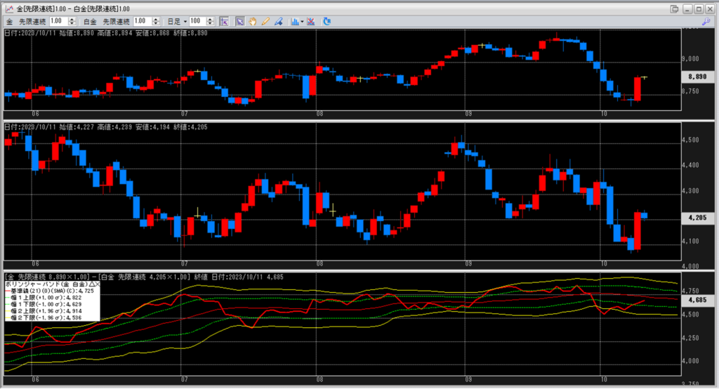 金白金の鞘をボリンジャーバンドで見ていきます。