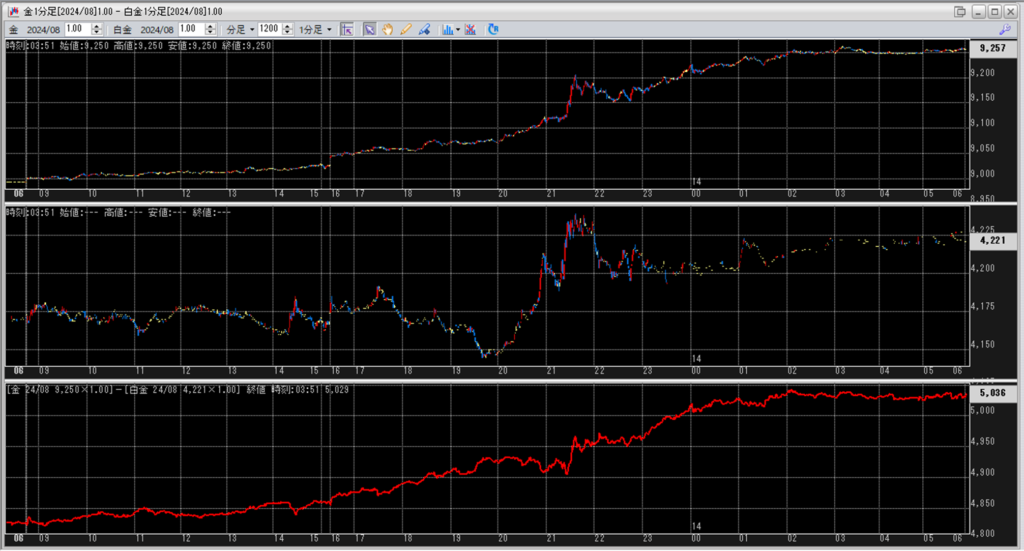 中:大阪取引所 白金 2024年8月限 1分足