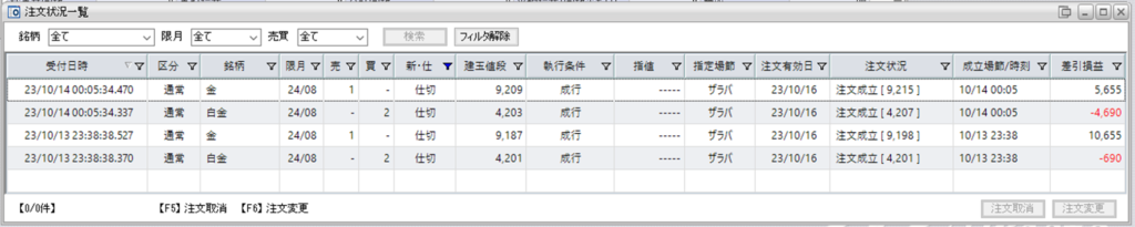 建玉はありませんが、下記に建玉状況を貼り付けています。