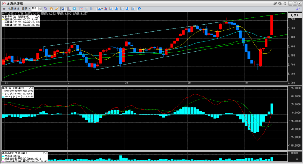 下記に金のチャートを貼り付けています。