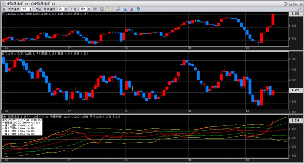 金白金の鞘をボリンジャーバンドで見ていきます。