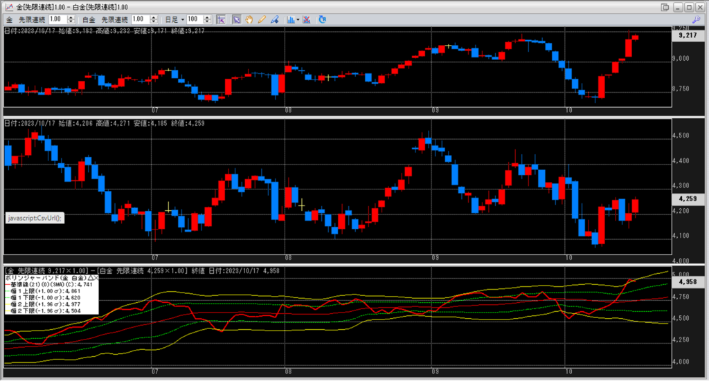 金白金の鞘をボリンジャーバンドで見ていきます。