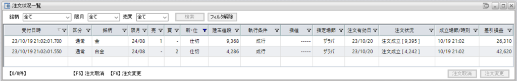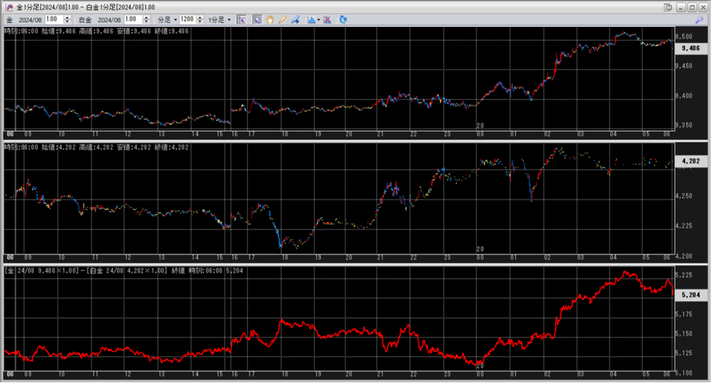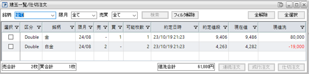 現在、鞘拡大の仕掛け金買い1枚-白金売り2枚を保持していますが、