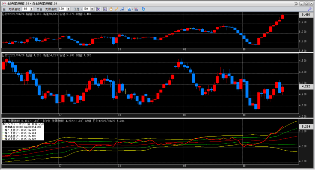金白金の鞘をボリンジャーバンドで見ていきます。