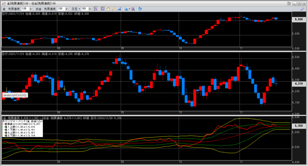 金白金の鞘をボリンジャーバンドで見ていきます。