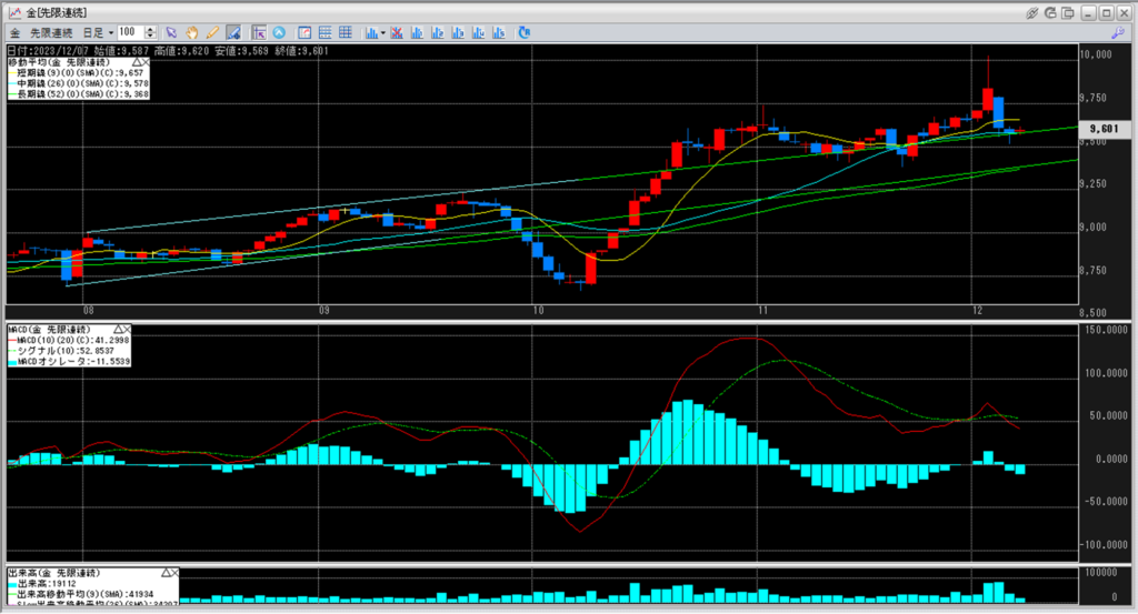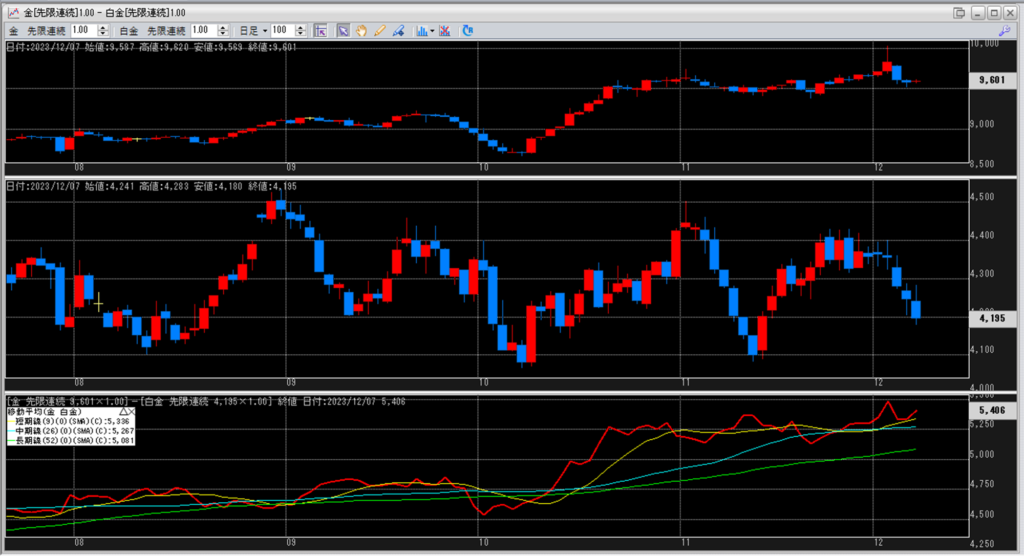 下記に金白金鞘の移動平均線のチャートを貼り付けています。