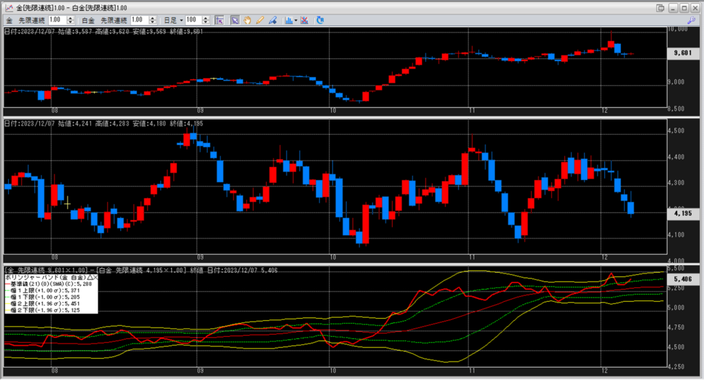金白金の鞘をボリンジャーバンドで見ていきます。