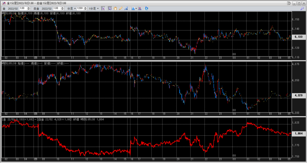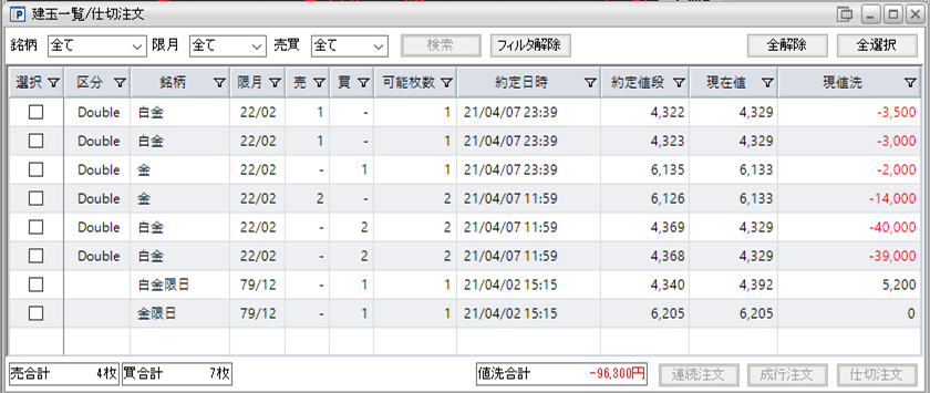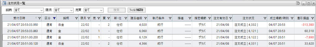 が、不安になって1組、鞘拡大である金買い1枚-白金売り2枚を仕掛けてしまいました。