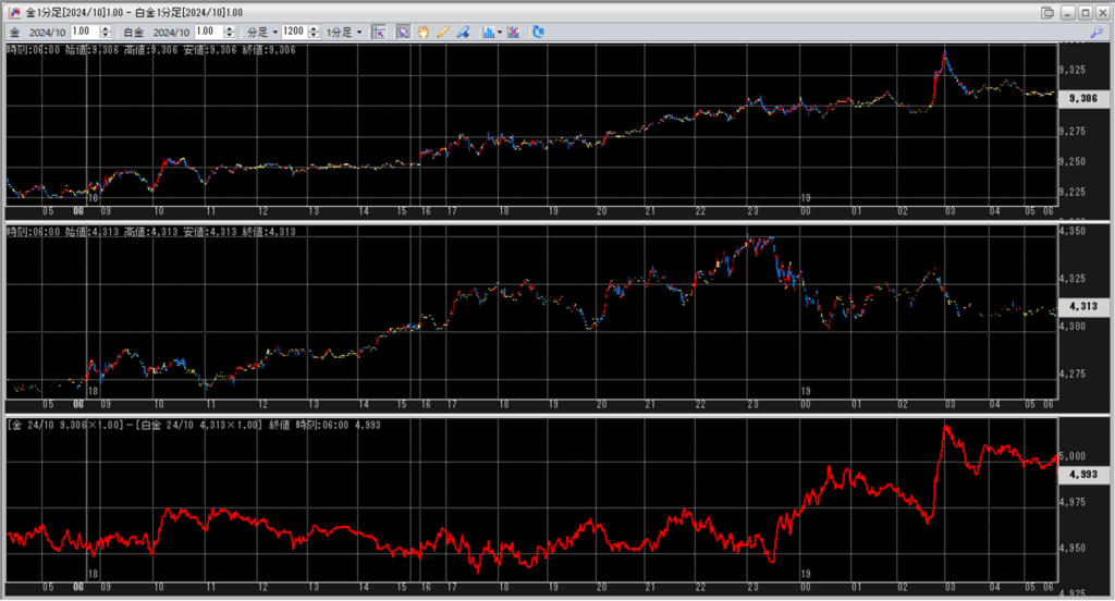 中:大阪取引所 白金 2024年10月限 1分足