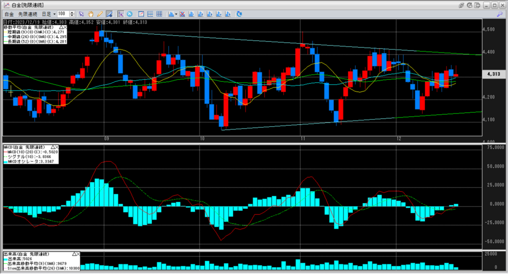 白金のチャートを見ると、4,100円から4,200円を下値とし、