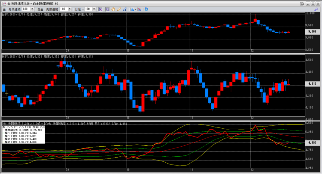 金白金の鞘をボリンジャーバンドで見ていきます。
